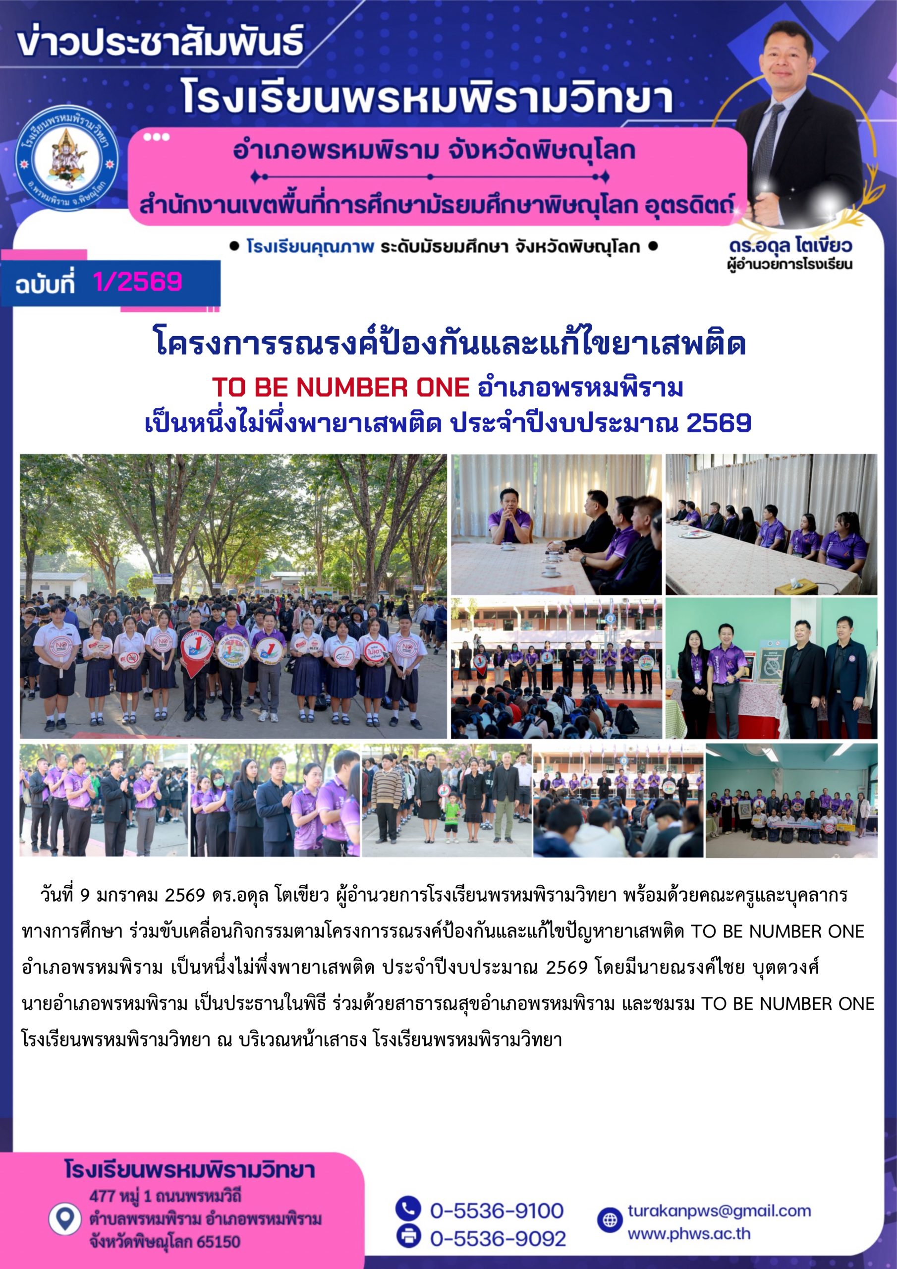 โครงการรณรงค์ป้องกันและแก้ไขปัญหายาเสพติด TO BE NUMBER ONE