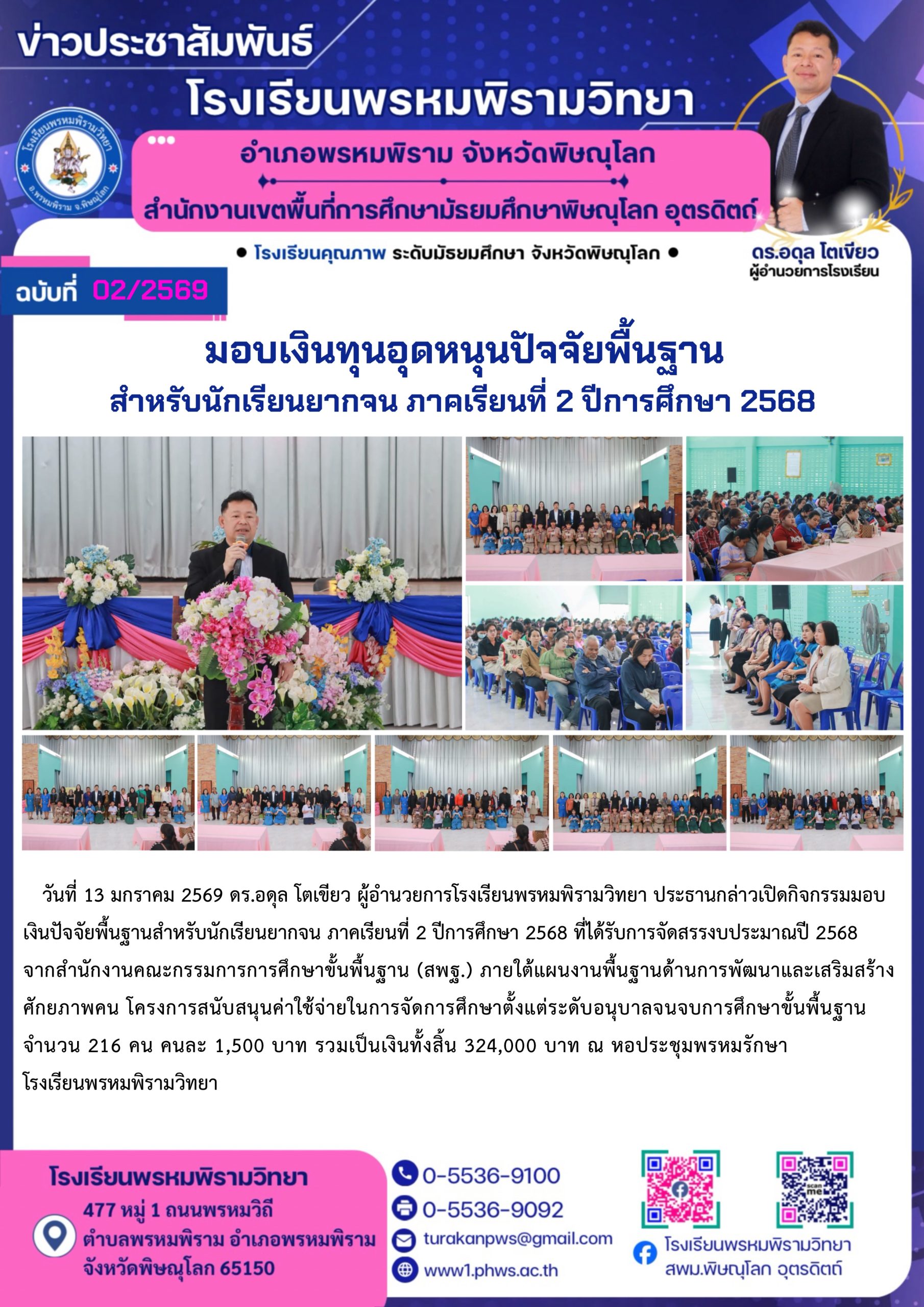มอบเงินอุดหนุนปัจจัยพื้นฐานสำหรับนักเรียนยากจน
