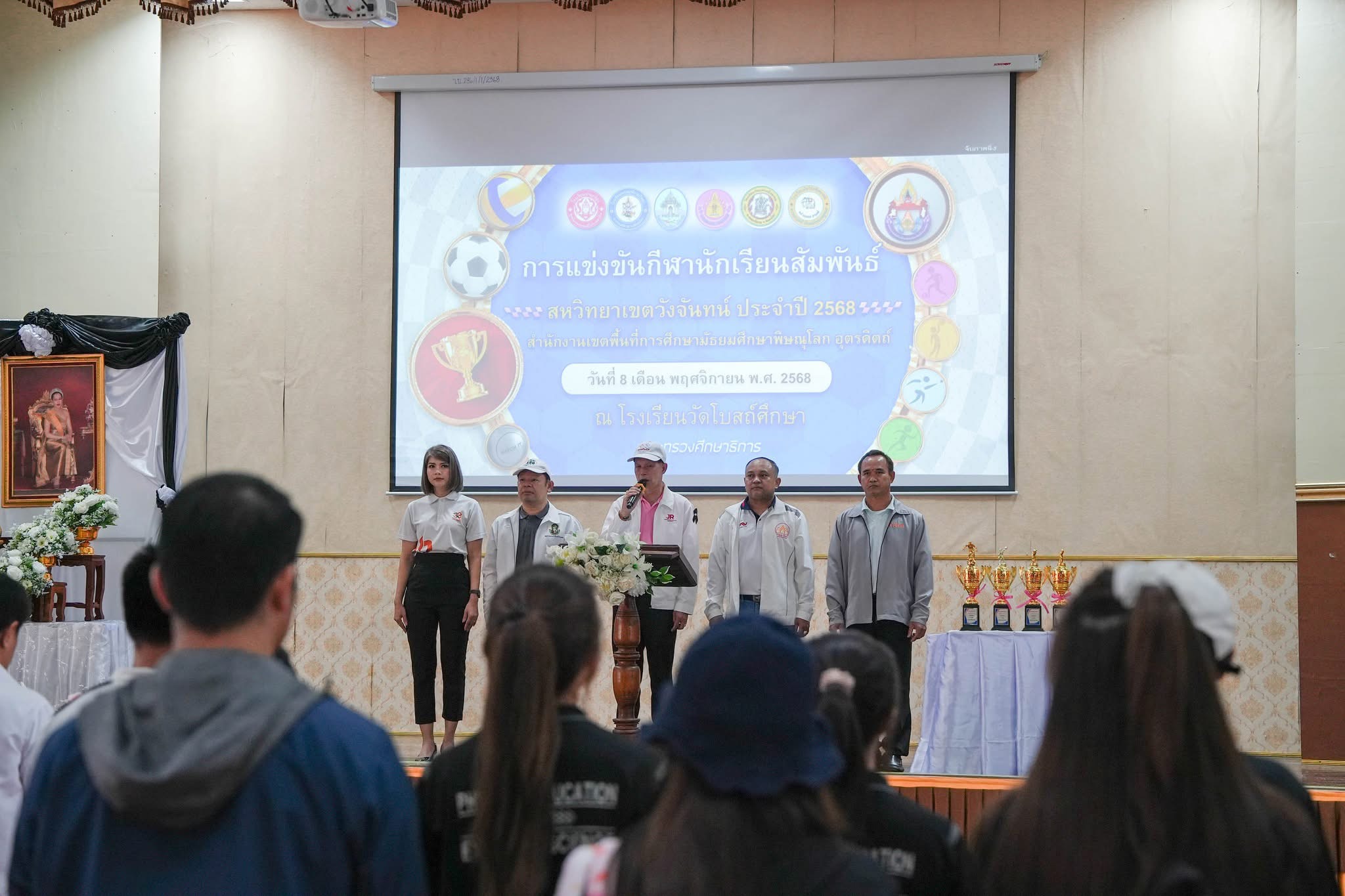 วันที่ 8 พฤศจิกายน 2568 ดร.อดุล โตเขียว ผู้อำนวยการโรงเรียนพรหมพิรามวิทยา พร้อมด้วยรองผู้อำนวยการ คณะครู นำนักเรียนเข้าร่วมการแข่งขัน กีฬานักเรียนสัมพันธ์ สหวิทยาเขตวังจันทน์ ประจำปี 2568 ณ โรงเรียนวัดโบสถ์ศึกษา