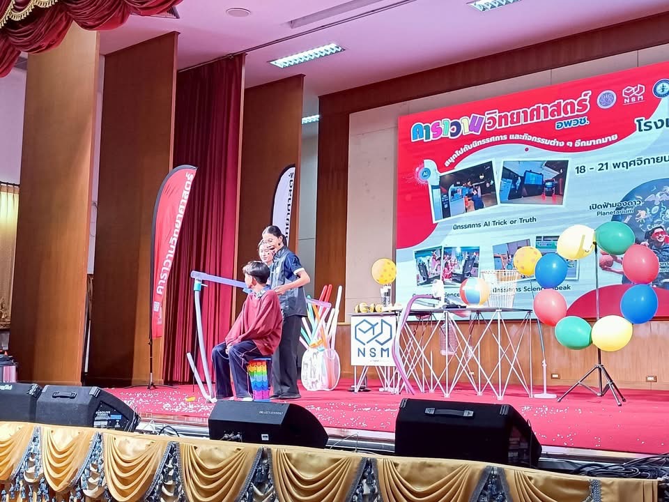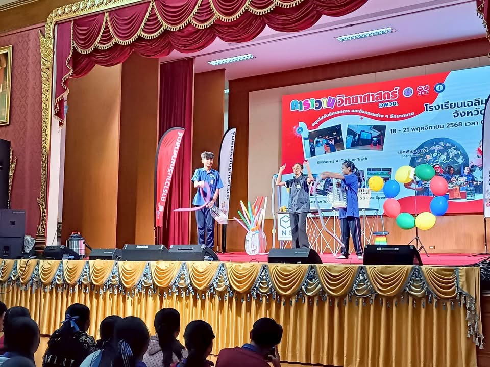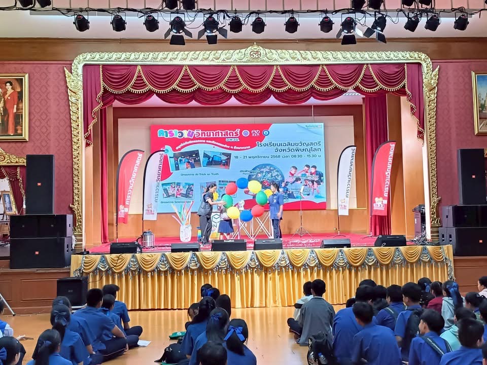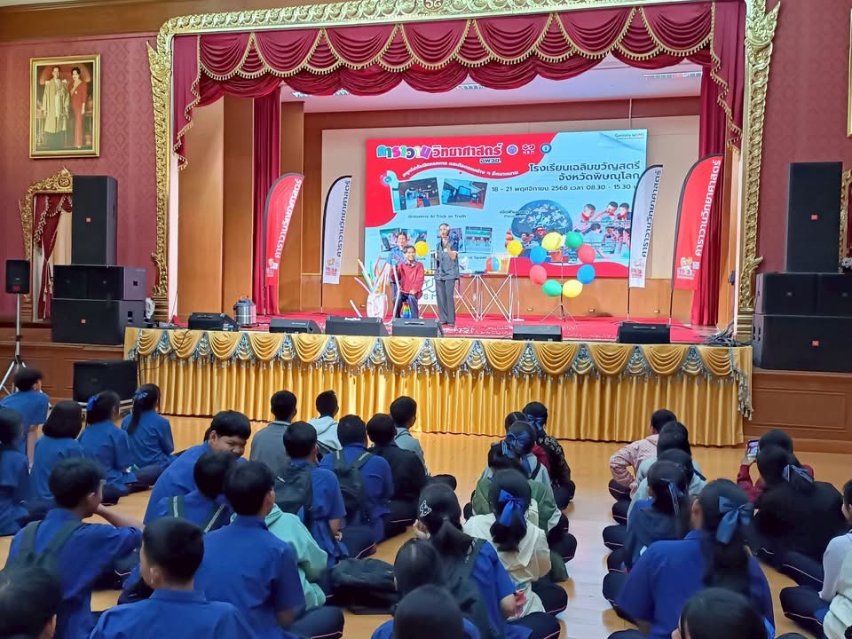 วันที่ 20 พฤศจิกายน 2568 ดร.อดุล โตเขียว ผู้อำนวยการโรงเรียนพรหมพิรามวิทยา มอบหมายให้กลุ่มสาระการเรียนรู้วิทยาศาสตร์และเทคโนโลยี นำโดยนางรัตนา เงินแจ้ง หัวหน้ากลุ่มสาระฯ นำนักเรียนชั้น มัธยมศึกษาปีที่ 1/1 เข้าร่วมกิจกรรม “คาราวานวิทยาศาสตร์ อพวช.” ณ โรงเรียนเฉลิมขวัญสตรี โดยกิจกรรมดังกล่าวจัดขึ้นโดย องค์การพิพิธภัณฑ์วิทยาศาสตร์แห่งชาติ (อพวช.) เพื่อเปิดโลกการเรียนรู้นอกห้องเรียน และส่งเสริมทักษะด้านวิทยาศาสตร์ให้กับเยาวชนไทยอย่างกว้างขวาง ภายในงานมีการจัดฐานการเรียนรู้ที่หลากหลาย อาทิ Science Show การสาธิตทางวิทยาศาสตร์ที่ทั้งสนุกและให้ความรู้ Maker Space พื้นที่สร้างสรรค์ที่ให้นักเรียนได้ทดลองประดิษฐ์และแก้ปัญหาจริง โดมดูดาว เปิดประสบการณ์เรียนรู้ดาราศาสตร์อย่างใกล้ชิด นิทรรศการวิทยาศาสตร์ เกม และของเล่นทางวิทยาศาสตร์ ที่กระตุ้นความสนใจและจินตนาการ นักเรียนได้ร่วมกิจกรรมอย่างสนุกสนาน ลงมือทดลองจริง คิดจริง ค้นพบด้วยตนเอง ทำให้เกิดการเรียนรู้แบบ Active Learning ที่เข้าถึงง่ายและชวนตื่นเต้น ช่วยเสริมทักษะการคิดเชิงวิทยาศาสตร์ ความอยากรู้อยากเห็น และทักษะการแก้ปัญหาได้เป็นอย่างดี กิจกรรมครั้งนี้นับเป็นอีกหนึ่งโอกาสสำคัญที่ช่วยปลูกฝังความรักในวิทยาศาสตร์ และเปิดมุมมองใหม่ให้กับนักเรียนในการเรียนรู้ผ่าน