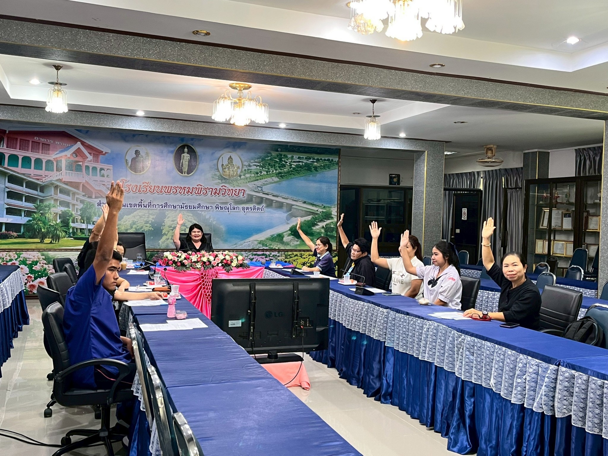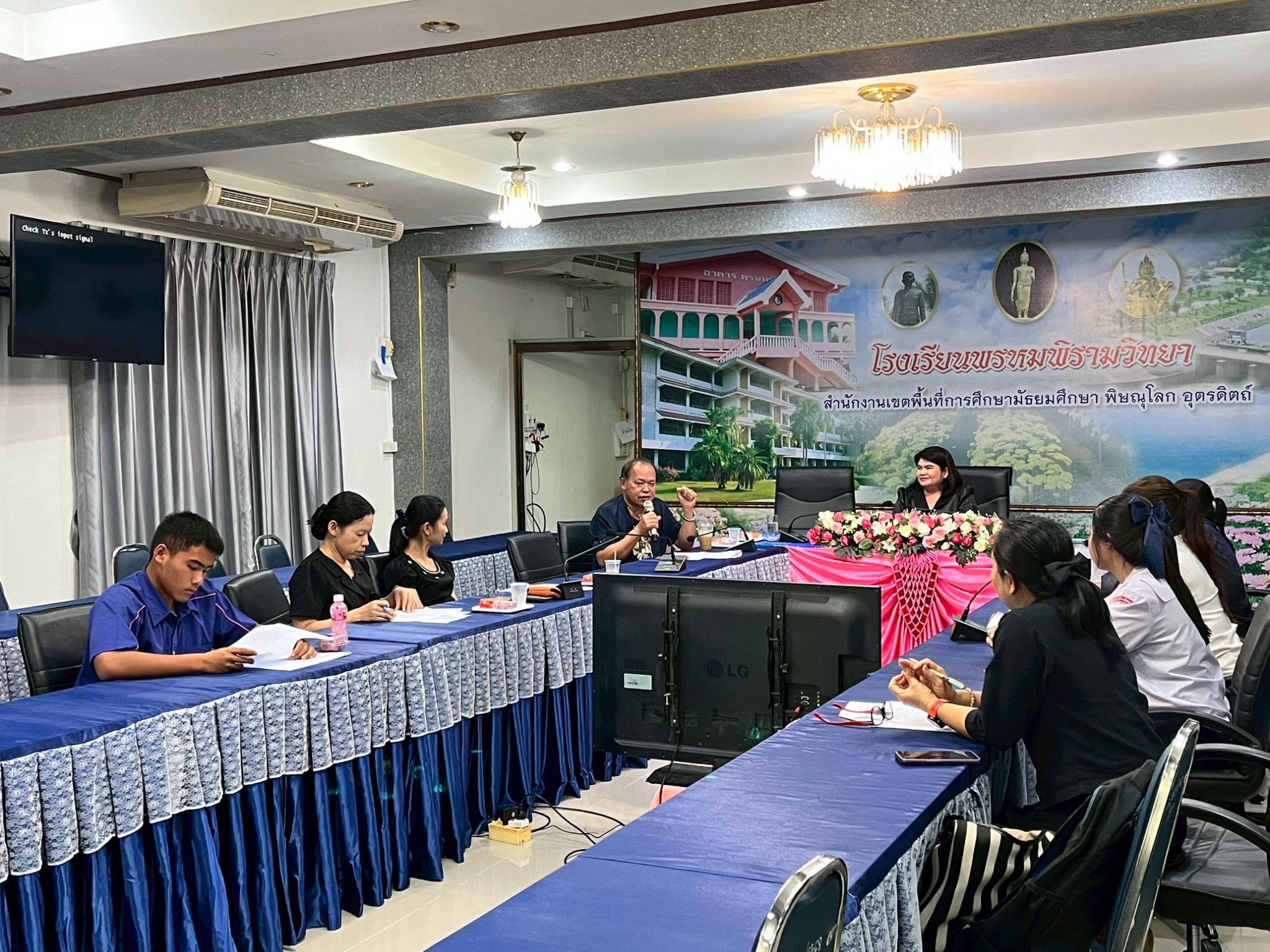 วันที่ 27 มกราคม 2569 ดร.อดุล โตเขียว ผู้อำนวยการโรงเรียนพรหมพิรามวิทยา ได้มอบหมายให้ นางสาวลัลนา ปลั่งศรีรัตน์ ดำเนินการจัดประชุมภาคี 4 ฝ่าย เรื่องการคัดเลือกหนังสือเรียน ประจำปีการศึกษา 2569 โดยมีผู้แทนจากภาคีที่เกี่ยวข้องเข้าร่วมการประชุมอย่างพร้อมเพรียง เพื่อร่วมกันพิจารณาคัดเลือกหนังสือเรียนที่มีความเหมาะสม สอดคล้องกับหลักสูตรแกนกลางการศึกษาขั้นพื้นฐาน และตอบสนองต่อการจัดการเรียนการสอนอย่างมีประสิทธิภาพ การประชุมครั้งนี้เป็นไปด้วยความเรียบร้อย ได้รับความร่วมมือและข้อเสนอแนะจากทุกภาคีเป็นอย่างดี ซึ่งจะนำไปใช้เป็นแนวทางในการพัฒนาคุณภาพการจัดการเรียนการสอน และเกิดประโยชน์สูงสุดต่อผู้เรียนในปีการศึกษาต่อไป
