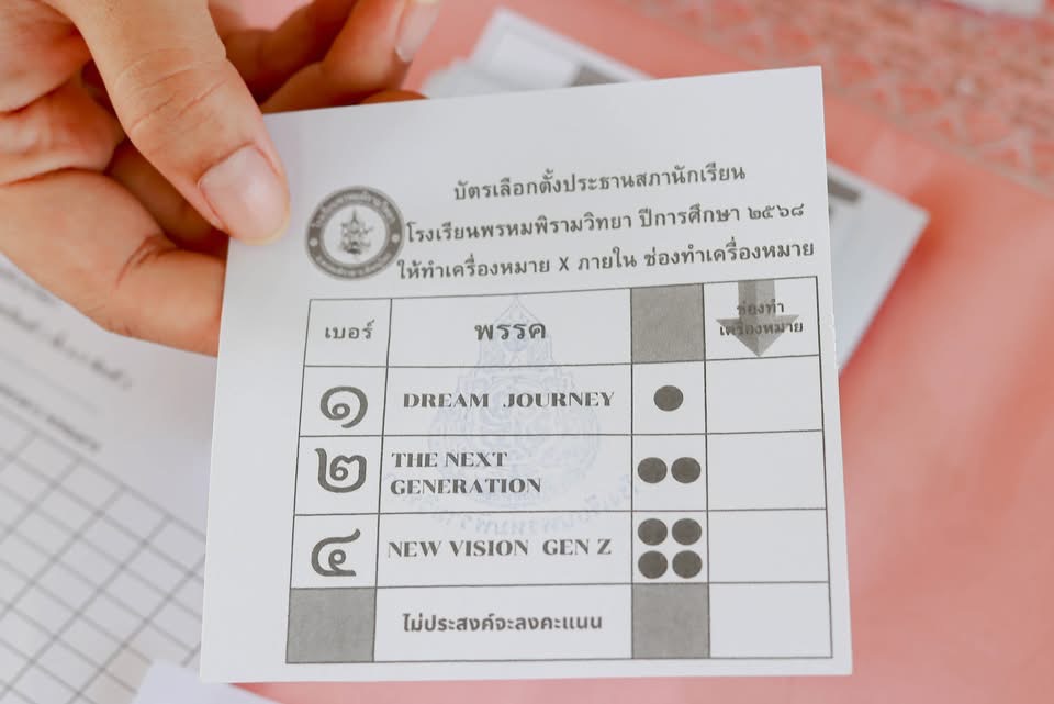 วันที่ 10 กุมภาพันธ์ 2569 ดร.อดุล โตเขียว ผู้อำนวยการโรงเรียนพรหมพิรามวิทยา พร้อมด้วยรองผู้อำนวยการ คณะครู และนักเรียนโรงเรียนพรหมพิรามวิทยา จัดกิจกรรมการเลือกตั้งสภานักเรียน ประจำปีการศึกษา 2568 ณ โดมพรพระพรหม โรงเรียนพรหมพิรามวิทยา การจัดกิจกรรมในครั้งนี้มีวัตถุประสงค์เพื่อส่งเสริมให้นักเรียนได้เรียนรู้กระบวนการประชาธิปไตย ฝึกการใช้สิทธิ์อย่างถูกต้อง รู้จักหน้าที่ของตนเองในฐานะพลเมืองที่ดี และปลูกฝังคุณลักษณะอันพึงประสงค์ด้านความรับผิดชอบ ความซื่อสัตย์ และการมีส่วนร่วมในสังคม ทั้งนี้ กิจกรรมการเลือกตั้งสภานักเรียนถือเป็นส่วนหนึ่งของการพัฒนาผู้เรียนให้มีทักษะชีวิต และสามารถนำหลักประชาธิปไตยไปประยุกต์ใช้ในชีวิตประจำวันได้อย่างเหมาะสม โดยพรรคที่ได้รับการเลือกตั้งได้แก่ พรรค PAK Dreamjourney หมายเลข 1 ด้วยคะแนนเสียง 609 คะแนนเสียง นายธนศักดิ์ ทับเอี่ยม เป็นประธานสภานักเรียนคนใหม่