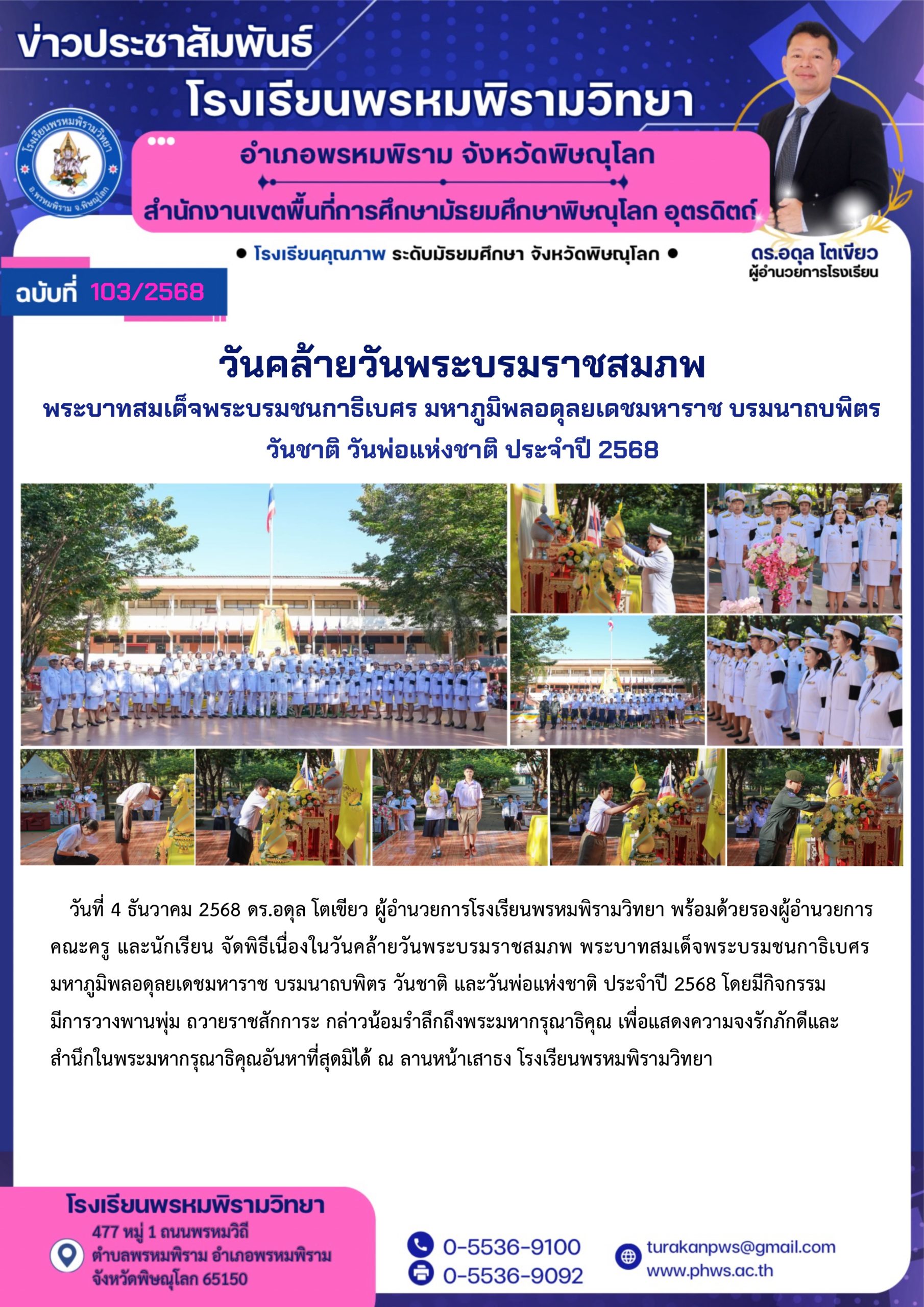 วันที่ 30 ตุลาคม 2568 ดร.อดุล โตเขียว ผู้อำนวยการโรงเรี […]